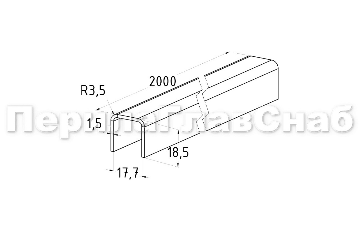 Профиль нержавеющий П-образный 18.5х17.7х1.5х2000 мм под стекло 16 мм полированный