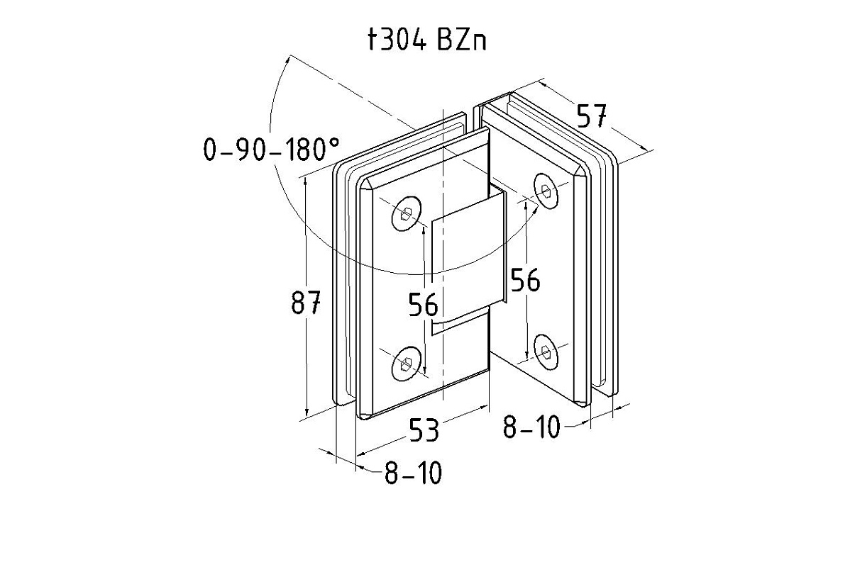 Петля для душевой кабины стекло-стекло 90°, 90*55, материал - цинк.