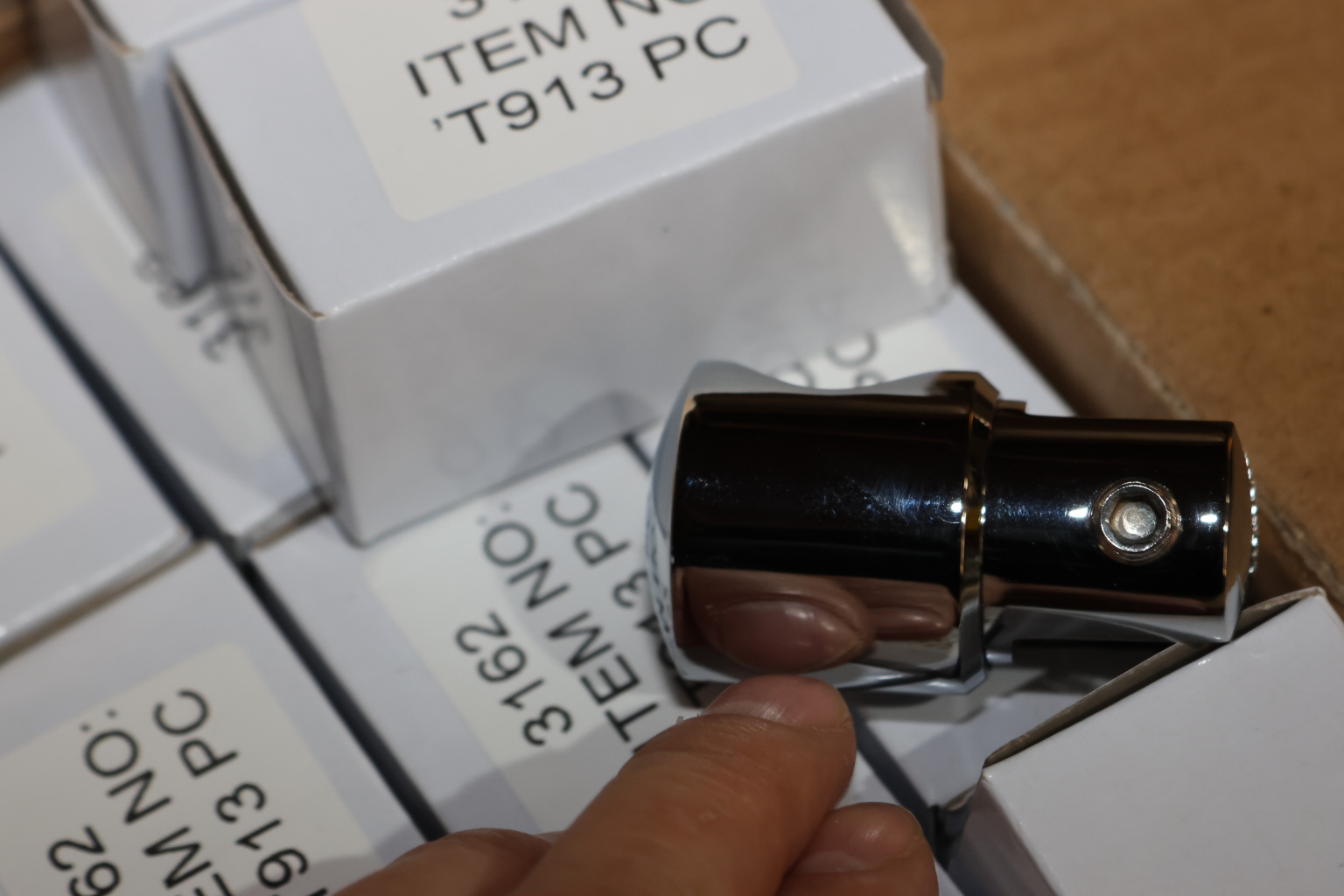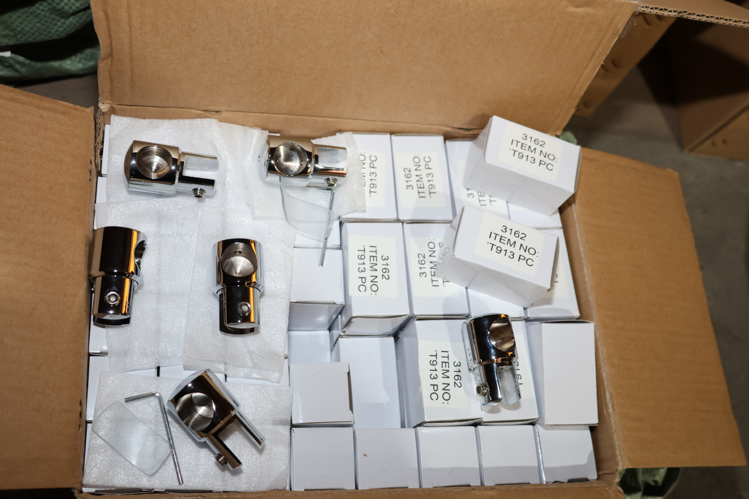 Крепежный элемент труба-стекло. Основная задача соединить окончание трека с кромкой стекла. Материал: латунь-хром, поверхность - полированная