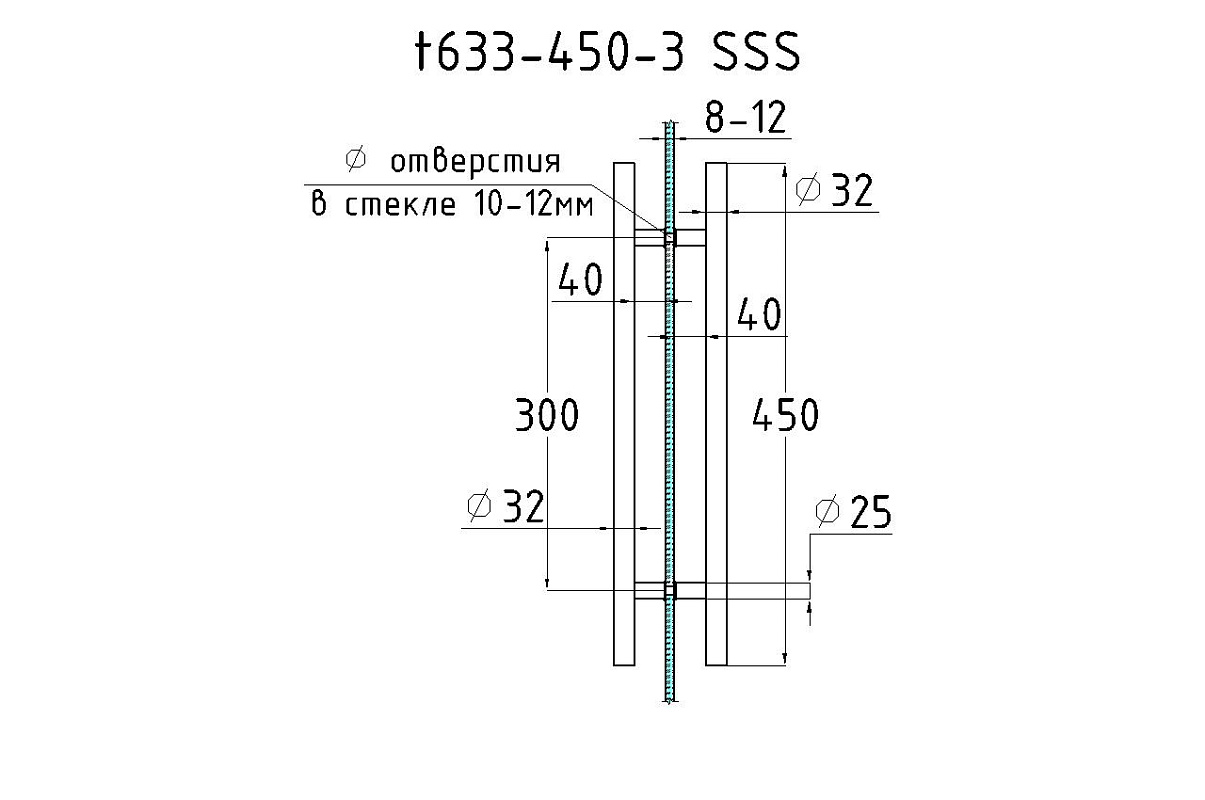 Ручка двухсторонняя для стекла 8-12 мм, 32x300x450 мм, AISI 201, шлифованная t633-450-3 SSS