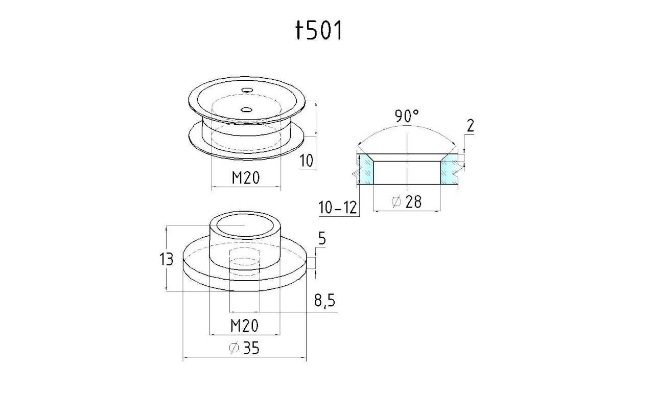 Точечный стеклодержатель 6 мм, нерегулируемый, под зенковку, для стекла 10-12 мм t501 SSS
