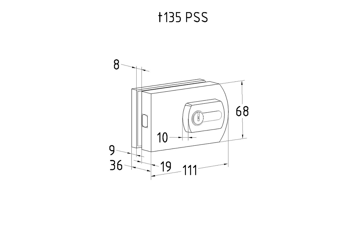 Замок для стеклянной двери с ответной частью на стекло, без вырезов в стекле полированный t109 PSS