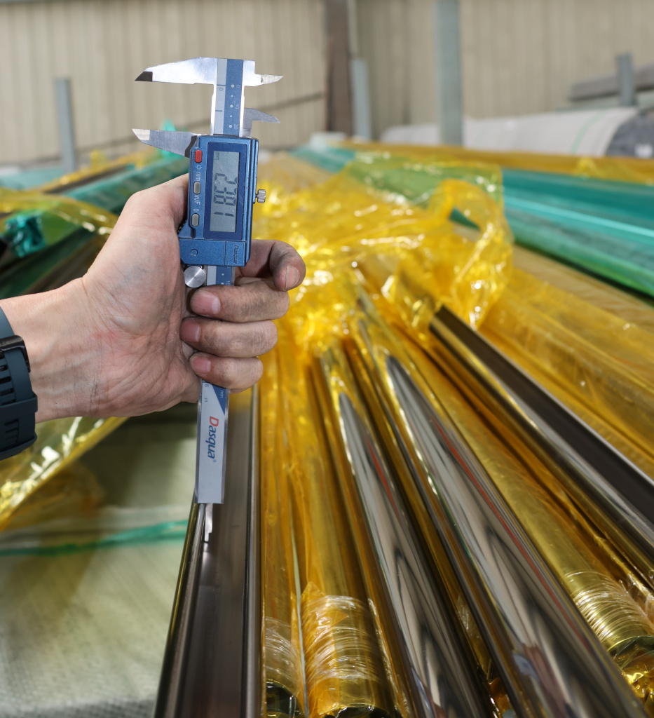 Труба Ø42.4 мм, с пазом 24х24, тройная полировка 800GRIT, (AISI 201) k820