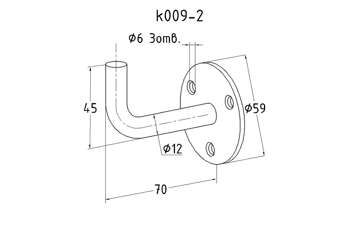 Кронштейн для перил к стене без ложемента, Ø60х3 мм k009-4