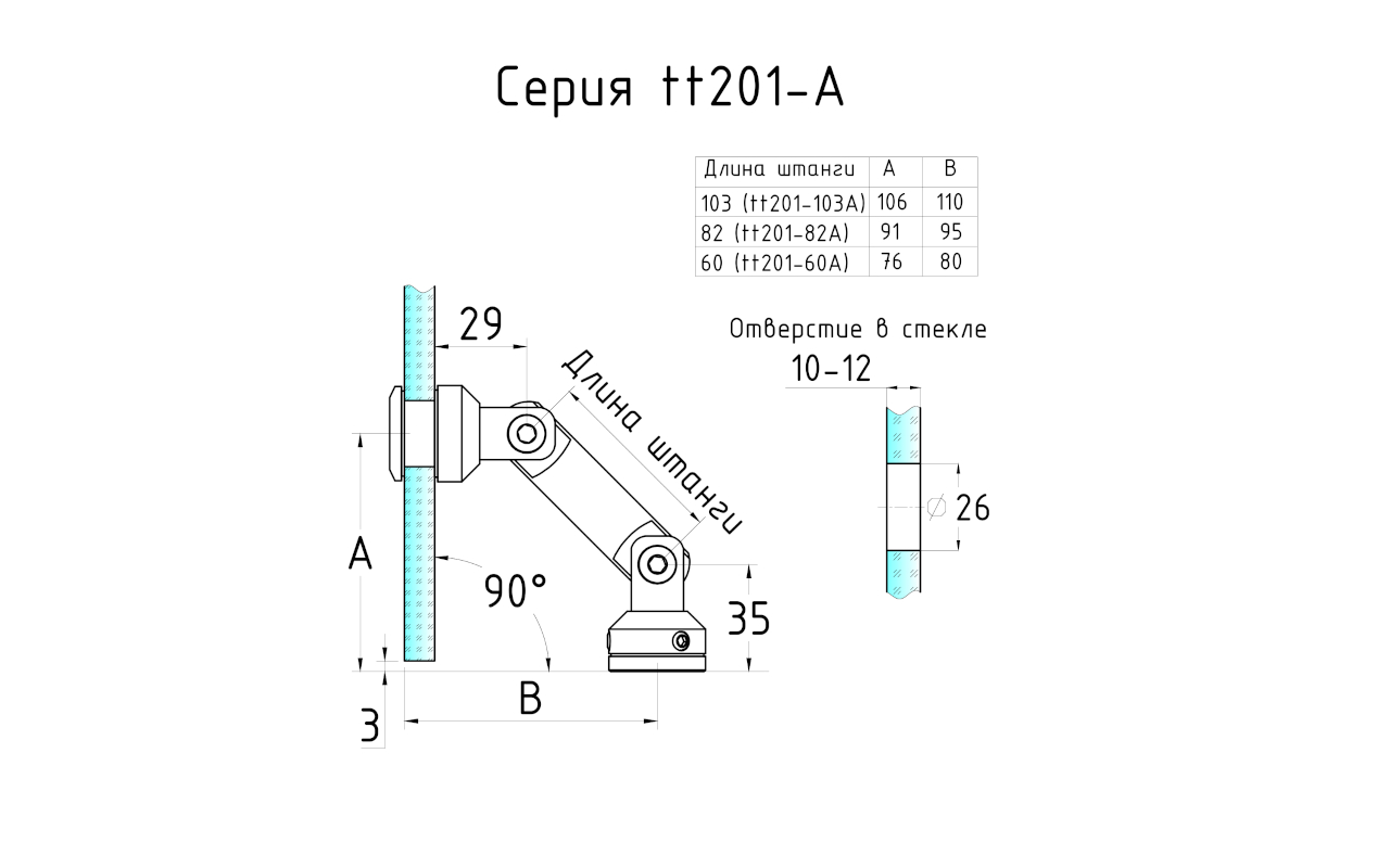 фиксация неподвижных стёкол к стене под произвольным углом.