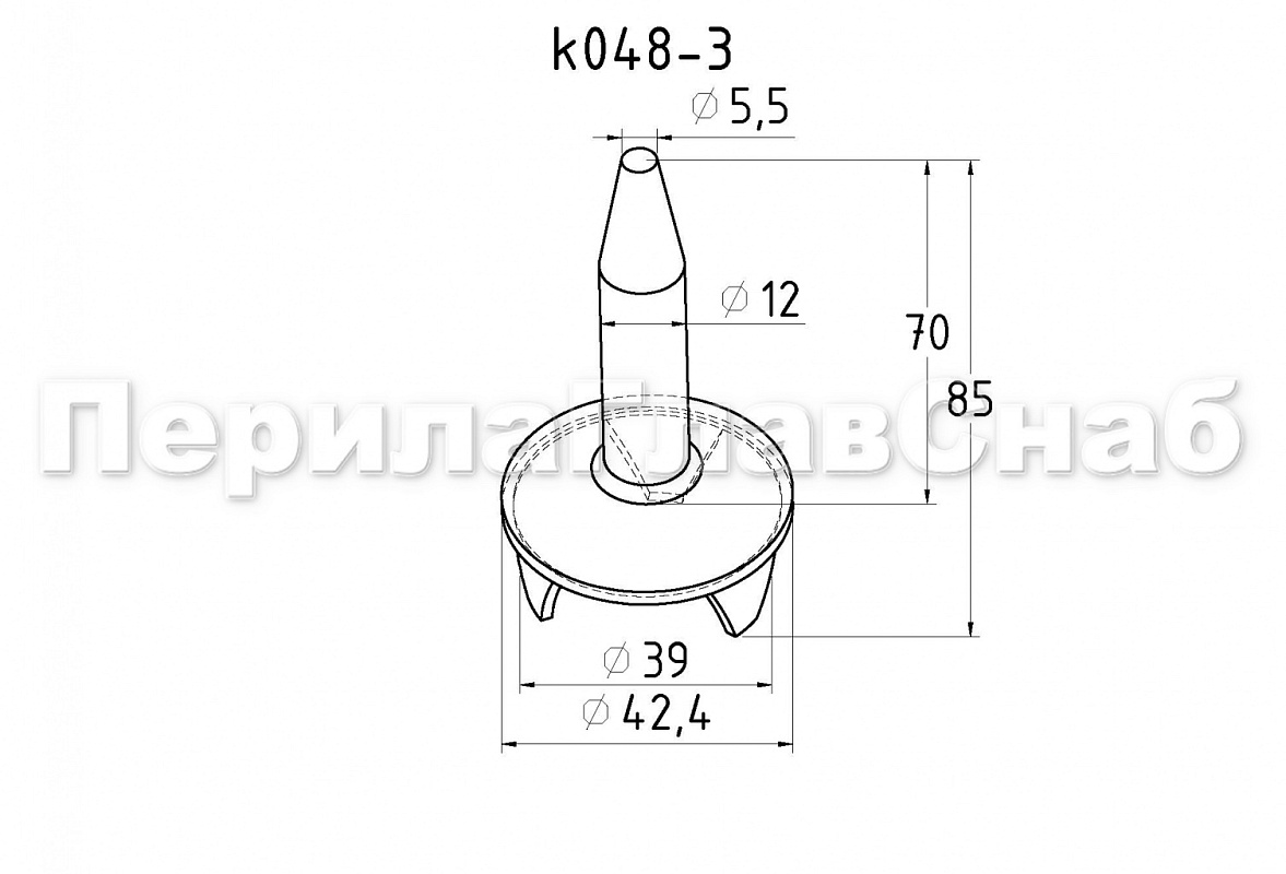 Наконечник палец (солдатик) 70 мм на трубу Ø42.4х1.5 мм, без ложемента, удлиненный, литой, полированный, нержавеющий (AISI 304) k048-3