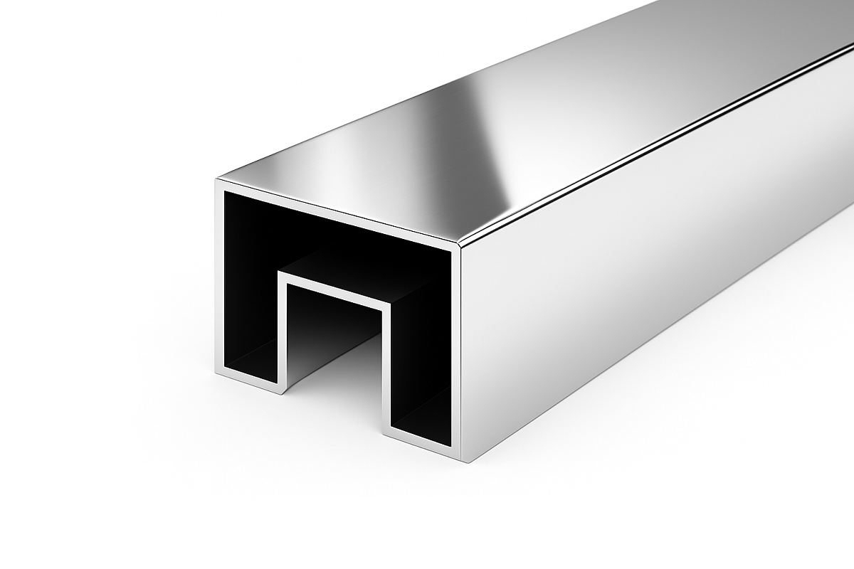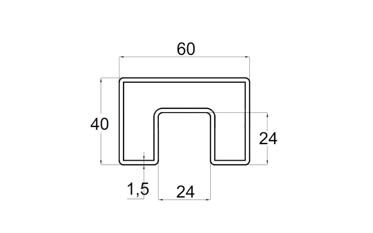 Труба Prima3+, 40х60х1.5 мм, с пазом 24х24мм под стекло, полировка 600GRIT, AISI 201
