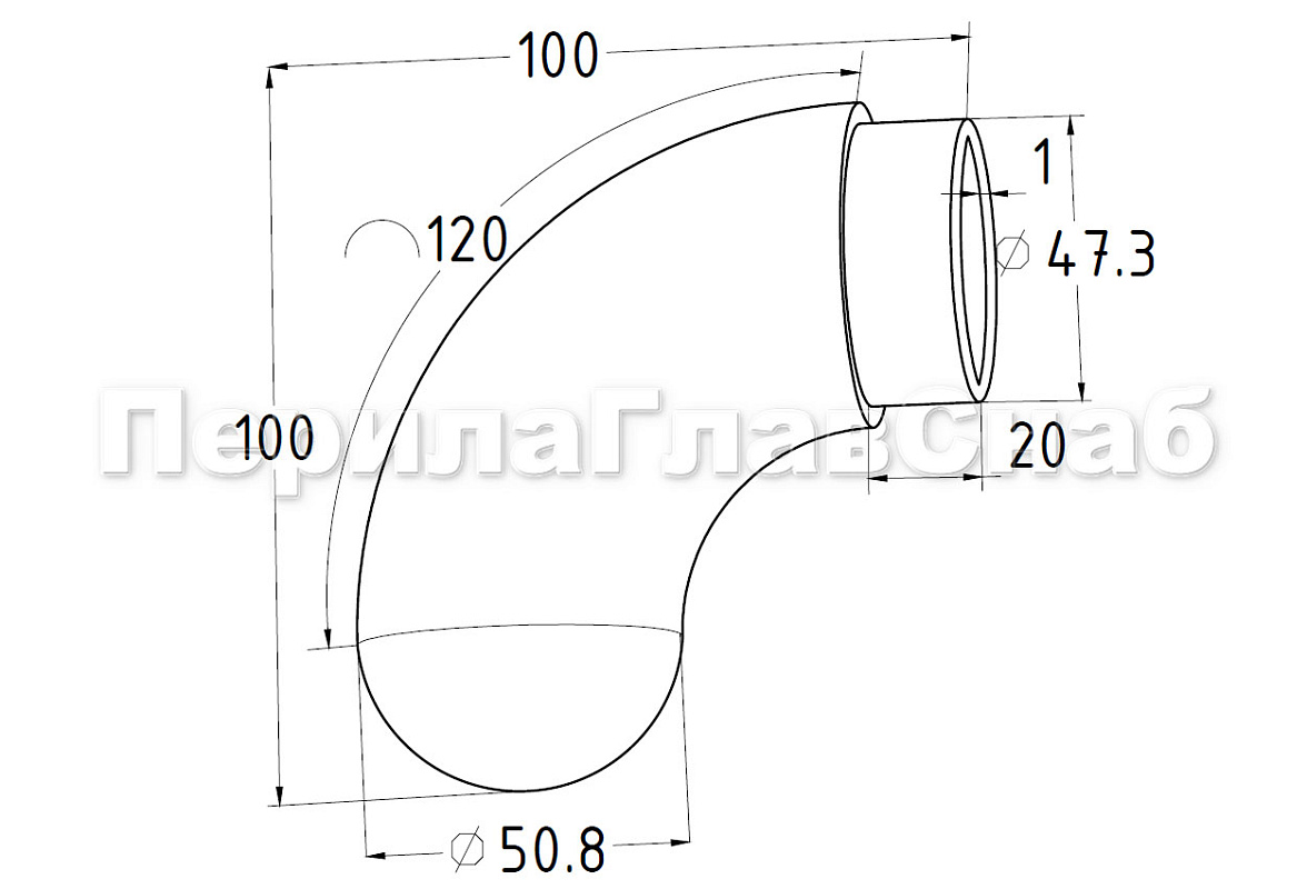 длина дуги 145 мм, для поручня Ø50.8 мм
