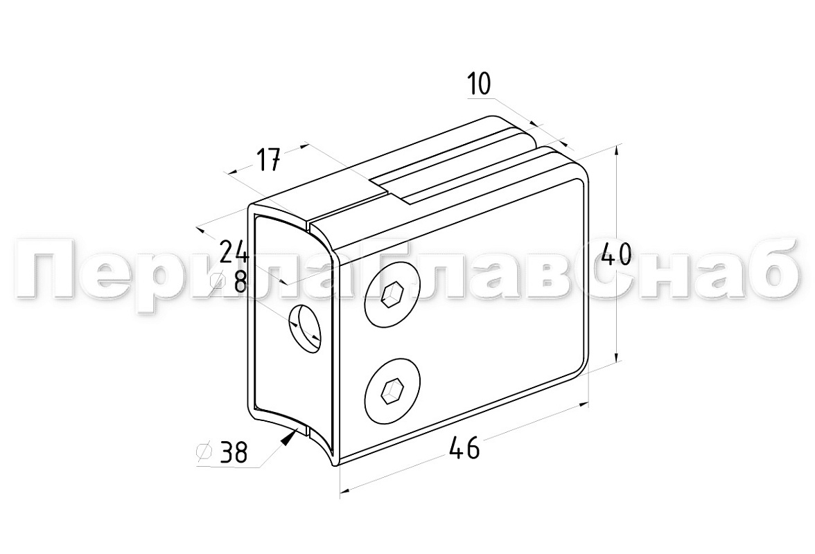 Стеклодержатель штампованный, под стекло 10 мм (5+5 мм), квадратный, под стойку Ø38.1 мм (40х24х48), полированный. Марка стали - AISI 304