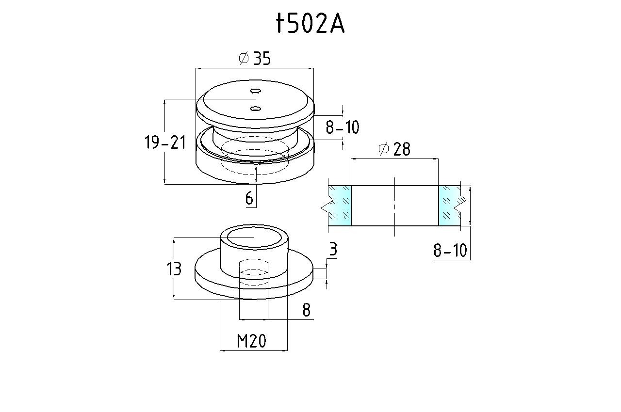 Точечный стеклодержатель 8.5-10.5 мм, регулируемый, без зенковки, для стекла 8-10 мм t502A SSS