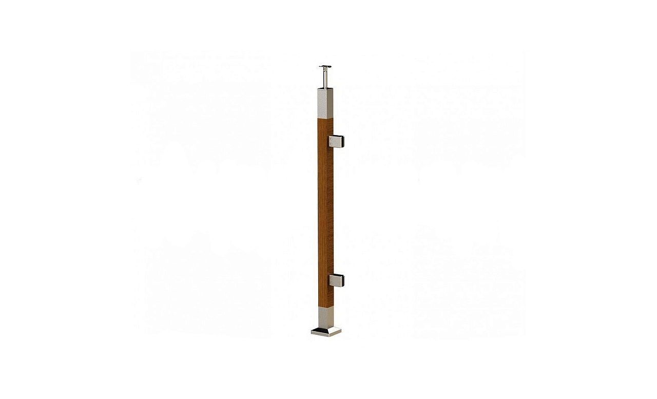 Готовая стойка 40х40х950 мм, деревянная, со вставками из нержавеющей стали 2х100 мм с 2 зажимными стеклодержателями k740-4-L купить в Волгограде