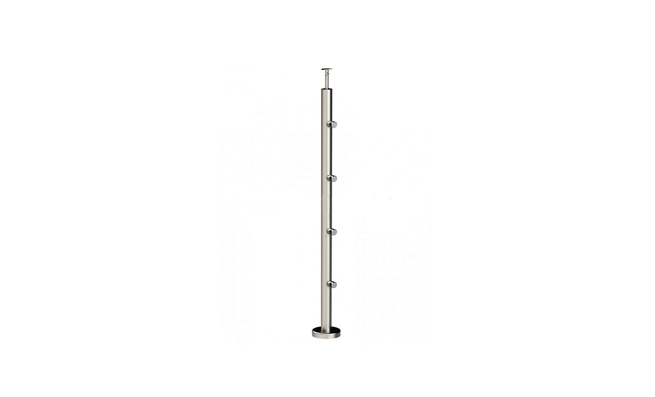 Стойка изготовлена на нашем производстве и готова к установке сразу после покупки. Используемая при изготовлении 304 марка стали позволяет применять данную стойку как внутри здания, так и на улице. Особенно это важно для людей, которым важно сделать свои ограждения в одном стиле как внутри здания, так и снаружи. Все элементы стойки приварены аргонной сваркой, благодаря чему фланец с 3-мя отверстиями для крепления в пол, ригеледержатели под трубу ф16мм и наконечник под трубу ф38-50 составляют единую конструкцию со стойкой. Сварные швы на балясине убраны и идеально заполированы, а балясина ничем не уступает ограждениям сделанным профессиональными бригадами. Любой человек сможет сделать монтаж имея только отвертку, клей( ф-1127, ф-1105) и саморезы( М-3850, М-3847, М-3215). 4-х ригельная балясина - это усовершеннствованная 3-хригельная балясина. Данное ограждение идет с меньшим просветом между регилями по сравнению с k713, что увеличивает ценность данной балясины. Благодаря меньшему растоянию между ригелями стойка становится сразу элегантнее и обеспечивает дополнительную безопаснорсть. Данная балясина подходит как для входной группы, так и в общественных зданиях. Данные стойки нашли свое применение в бизнесс центрах и общественных сданиях с большой проходимостью людей.