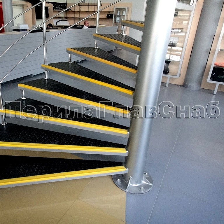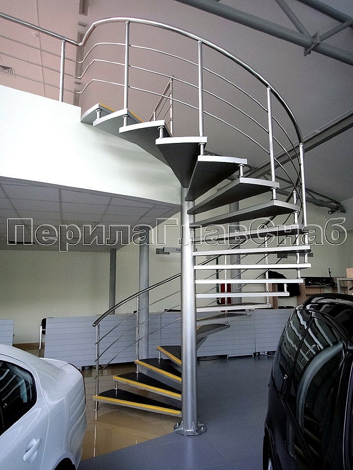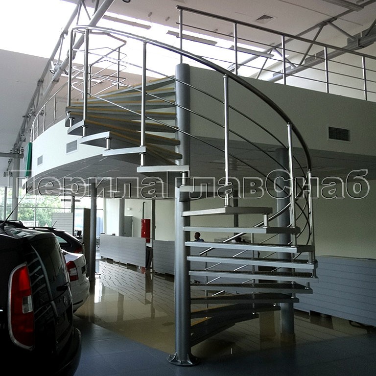 В здании автосалона всемирно известной марки «Skoda» была установлена винтовая лестница из нержавеющей стали на больцах с облицовкой каждой ступени антискользящим покрытием.