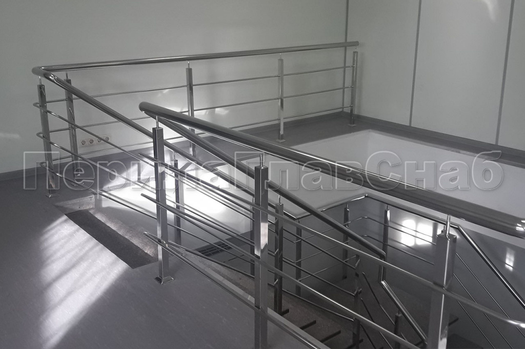 В связи с реконструкцией офисного помещения, находящегося в поселке возникла потребность в изготовлении и монтаже лестницы, высотой четыре метра, с первого на второй этаж, с двумя промежуточными площадками. К нам в компанию обратился заказчик за помощью в решении этой задачи.  На первом этапе для моделирования и составления расчетов лестницы, нашим конструкторским отделом был разработан, проект на данную лестницу. После согласования проекта с заказчиком, приступили к изготовлению и монтажу лестницы. Конструкция косоуров и площадки, выполнены из профильной трубы марки стали 3. Каркас ступени и площадки был сформирован из листа в виде корыта, для последующей заливки их бетоном. Вся конструкция лестницы сварная с последующей зачисткой швов всего металлокаркаса, шпатлевкой, грунтовкой и покраской пульверизатором по каталогу Ral. Ограждения на лестницу были выполнены из полированной нержавеющей стали. Стойки перил изготовлены из профильной трубы 40*40мм, крепились к косоуру лестницы на сварку. Поручень из трубы диаметром 50 мм крепился к стойке через наконечник штырь на сварку, поручень завязан по всей длине лестницы. Заполнение между стойками ригельное из трубы диаметром 16 мм, ригель крепился к стойке сваркой снизу. Все сварные швы ограждения были зачищены и заполированы. С задачей справились. Работы по изготовлению и монтажу лестницы и перил, были выполнены в течение шестидесяти рабочих дней.