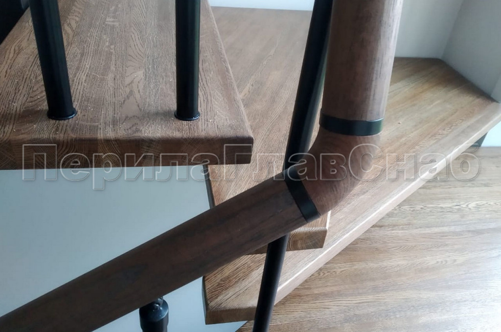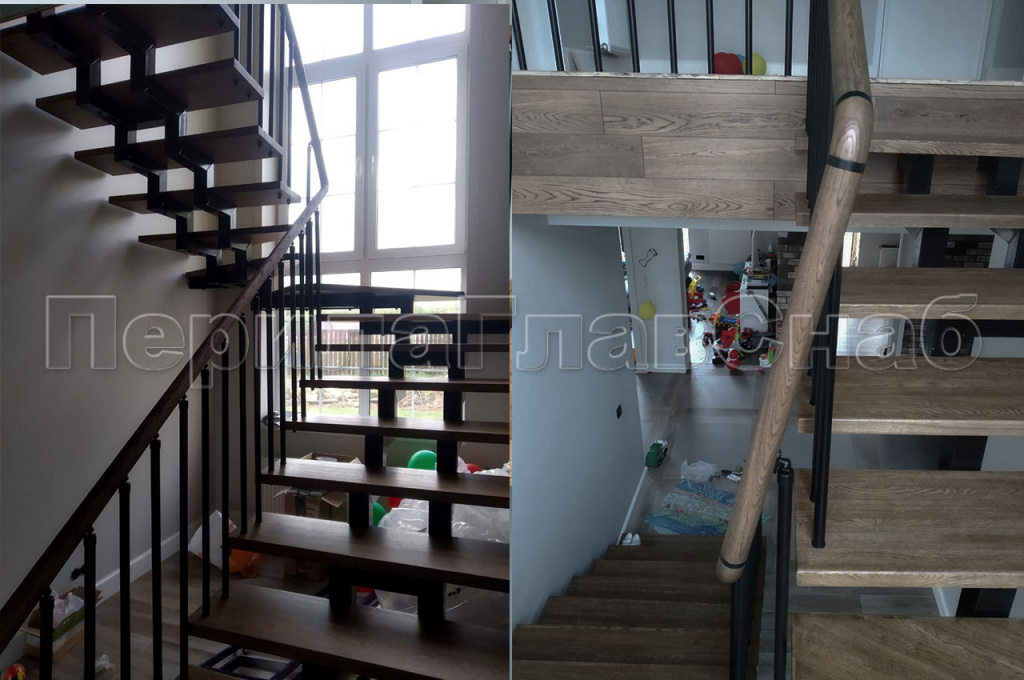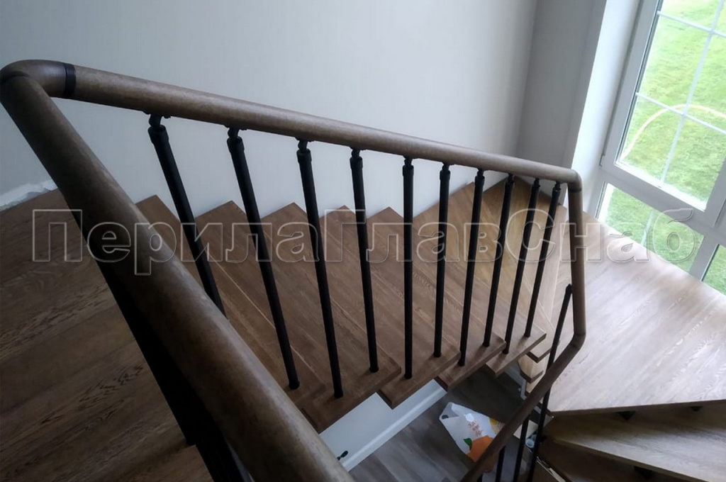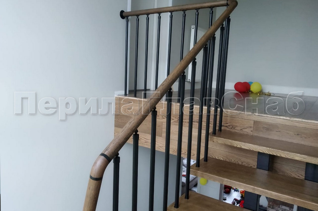 На северо-востоке Московской области в частном доме было изготовлено и смонтировано ограждение с вертикальным заполнением. Деревянный дом и уже установленная лестница самим заказчиком задали вектор по выбору перил. Под цвет ступеней был подобран и нанесен окрас поручня из массива дуба. Для подбора цвета клиент предоставил образец ступени, что позволило выбрать цвет с максимальным сходством. А стойки и вся фурнитура ограждения были специально выкрашены в черный цвет, что-бы не выделяться на фоне черного косоура лестницы. Для жесткости ограждения был выработан и применен на практике комплекс мер. Все стойки перил проходят ступень насквозь, такой метод крепления выбран специально для ступеней с небольшой толщиной. Вначале лестницы первую ступень трубы так же проходят насквозь, но уже бурятся непосредственно в пол, жестко фиксируя связку. Поручень ограждения идет непрерывной линией по всем восьми метрам погонным. На поворотах поручень завязан через специальный штифт и декоративные кольца и посажен на клей. К стене он закреплен фланцем. Таким конструктивом компания ПерилаГлавСнаб решила сразу две задачи. Первую – стилистическую. Перила отлично гармонируют со спокойным классическим стилем загородного дома. Оказывается перли из нержавейки – это не только офисный вариант, но и достойная альтернатива кованным ограждениям – достаточно грамотно подобрать дизайн. И вторую, по безопасности в ходе эксплуатации перил. Ведь в доме находится маленький ребенок, а значит он не сможет пролезть сквозь стойки, или перелезть через перила – родители будут спокойны. Стоимость метра погонного составляет 28 000 руб.