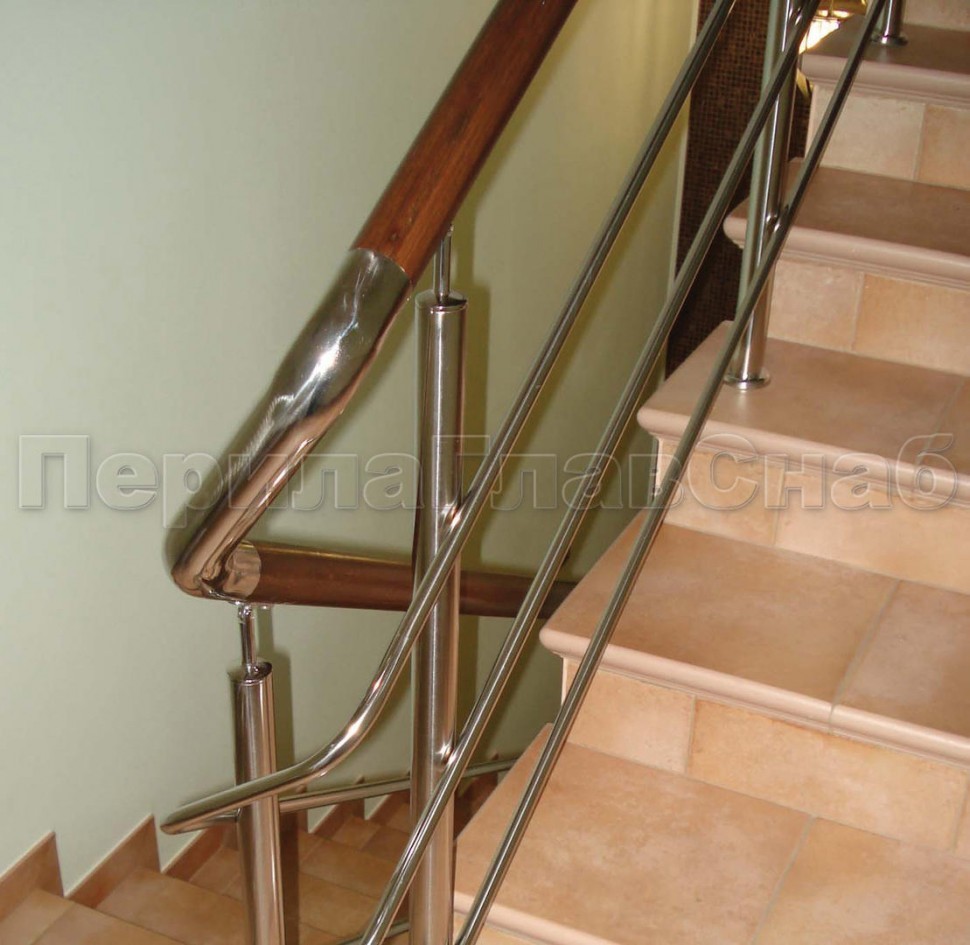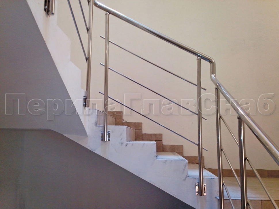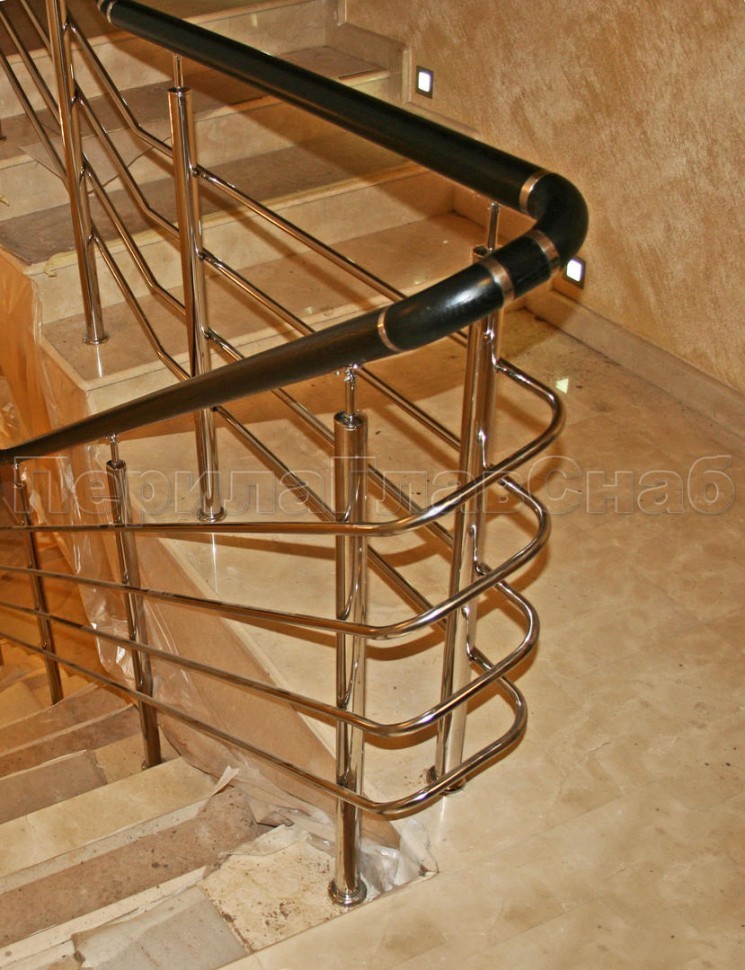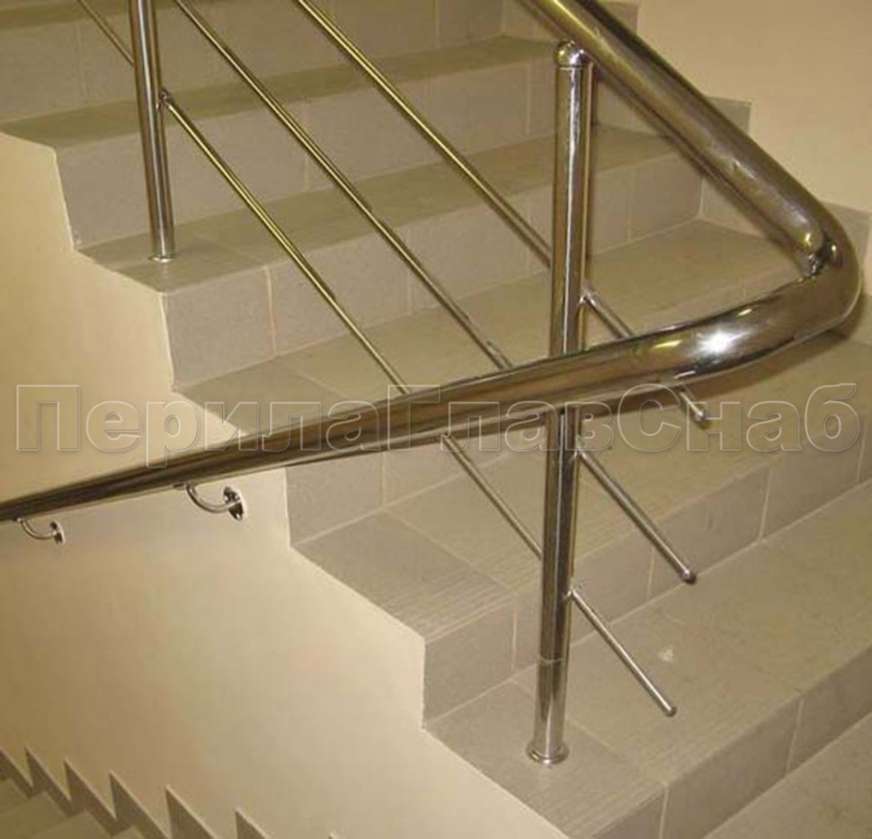 Поручень, стойки и фурнитура в базовой модели изготавливаются из полированной суперзеркальной нержавеющей трубы с пазом.
