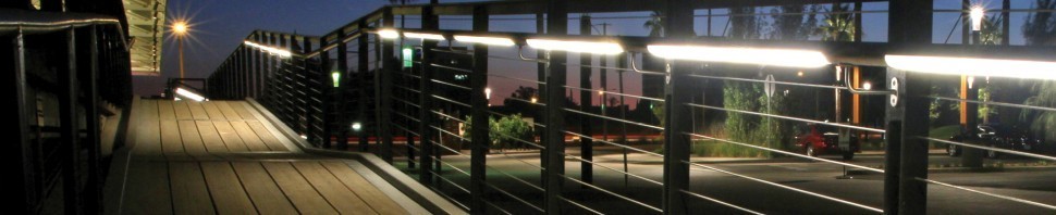 Часто используют подсветку поручня на ограждениях на улице, для эффектной подсветки проходных участков, а также для визуального отделения пешеходной и проезжей части