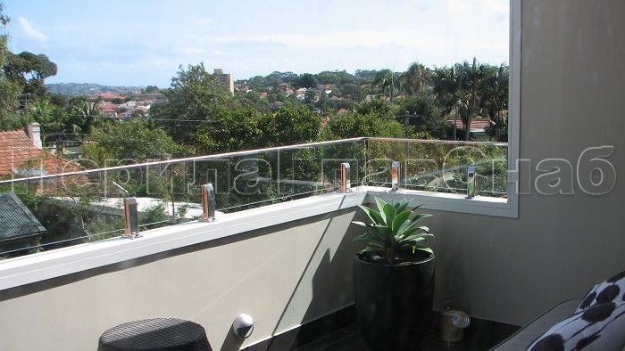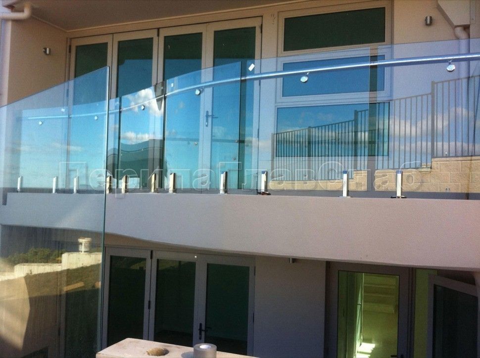 Цельностеклянные перила для балконов и лоджий с креплением на министойки.
