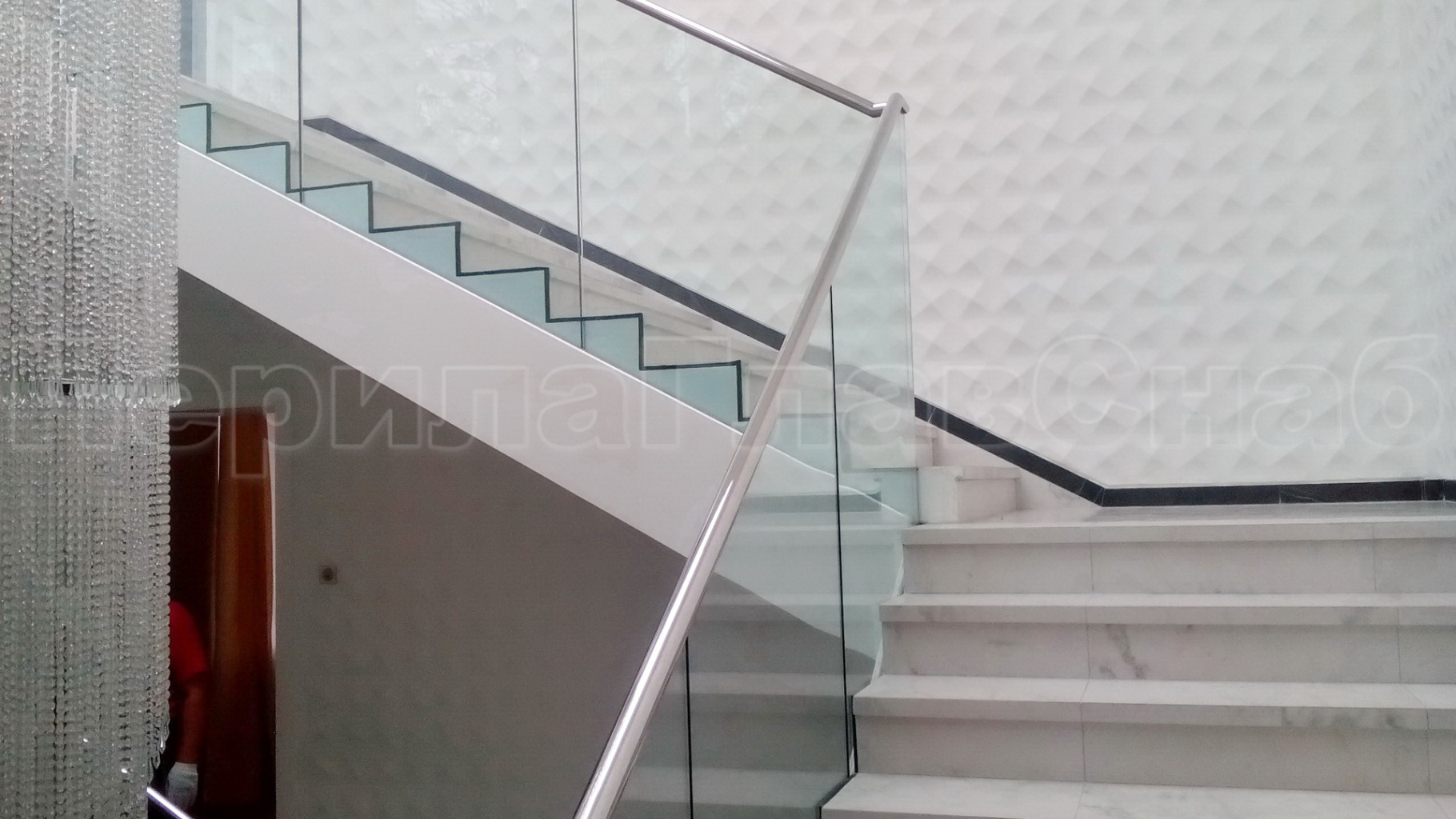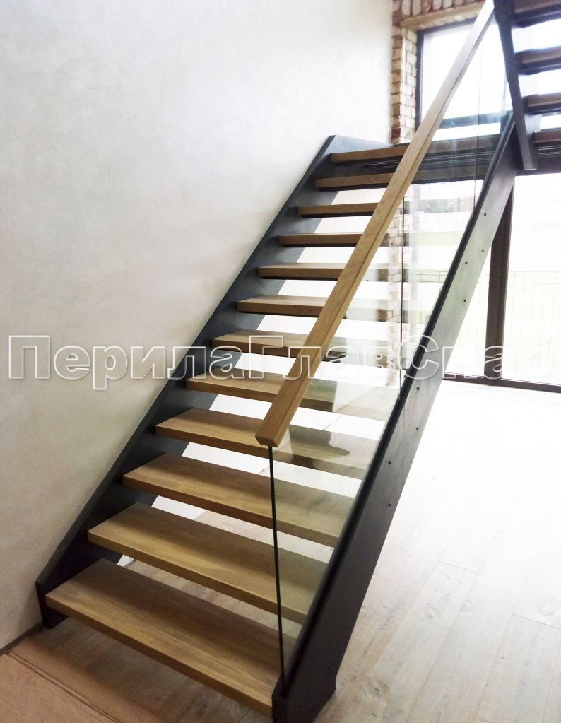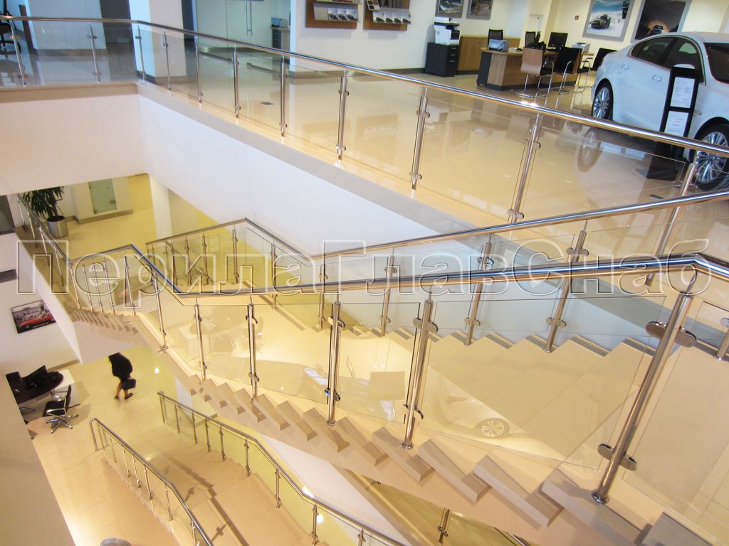 Ограждения лестницы без поручня с зажимными стеклодержателями и стойками
