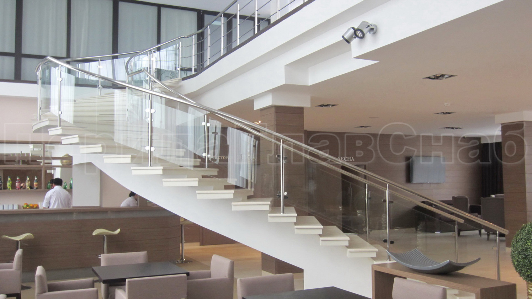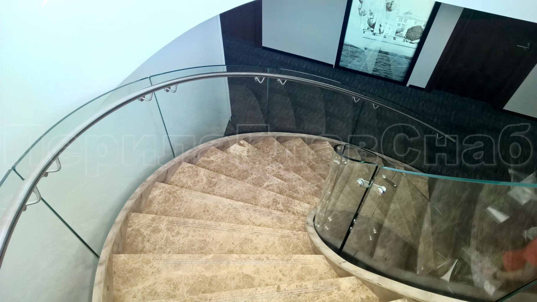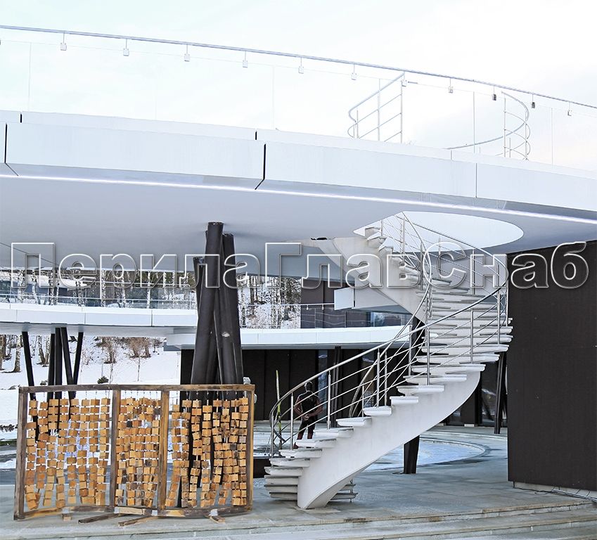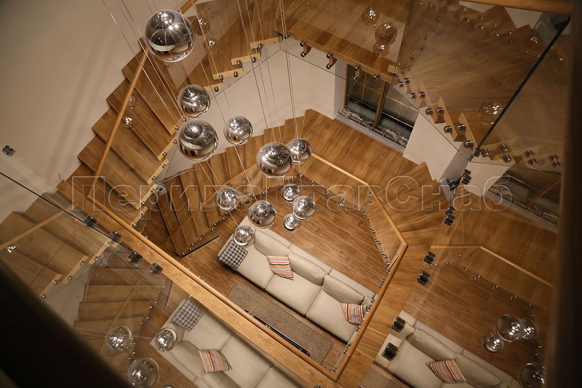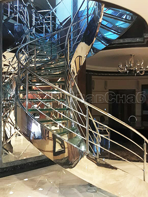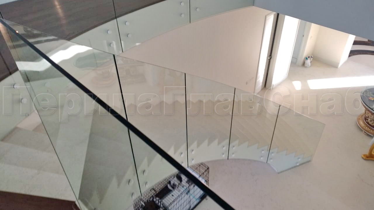 Стеклянные ограждения винтовой лестницы и баллюстрады