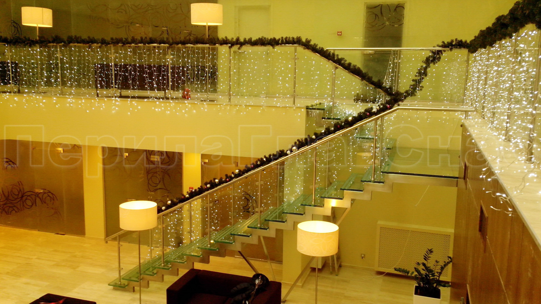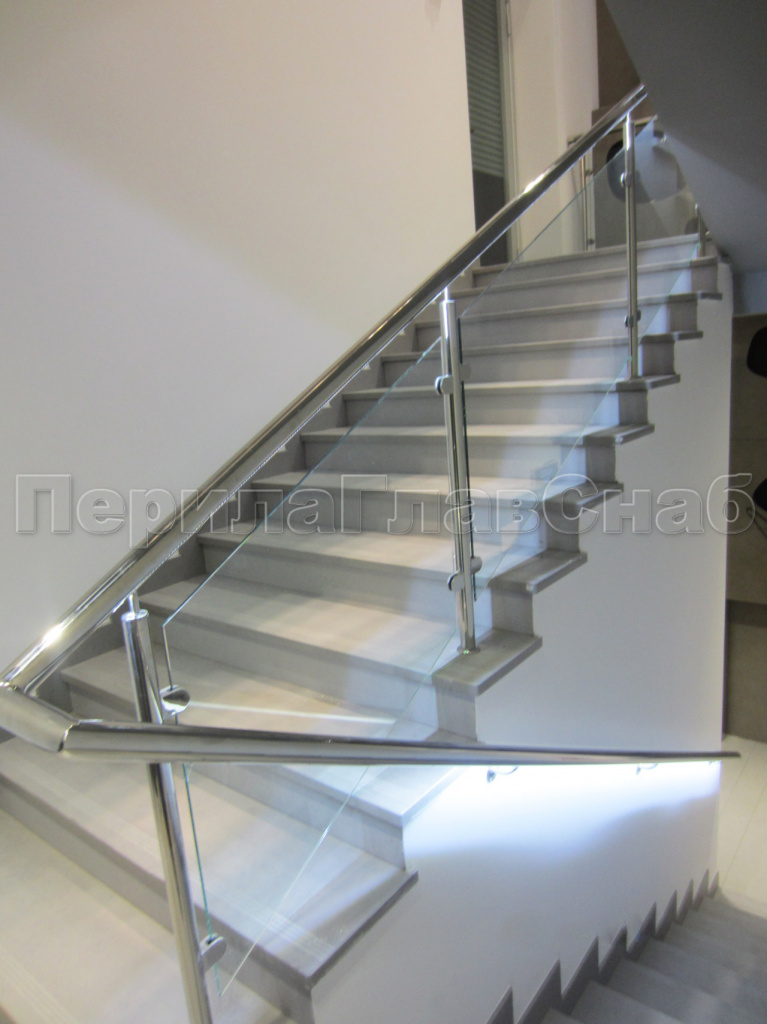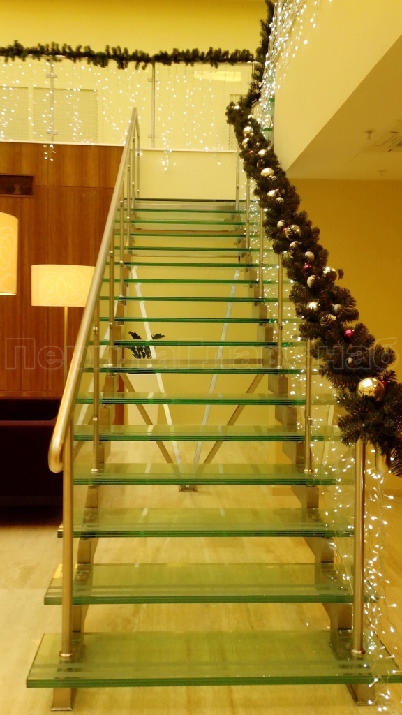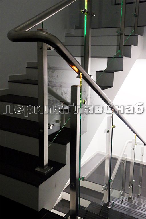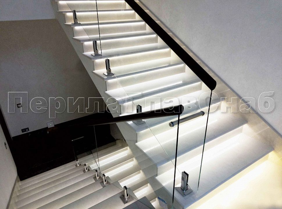 Ограждения лестниц на несущем стекле с подсветкой