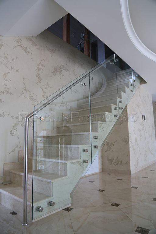 Ограждение для лестницы на несущем стекле с точечным креплением в торец для крыльца